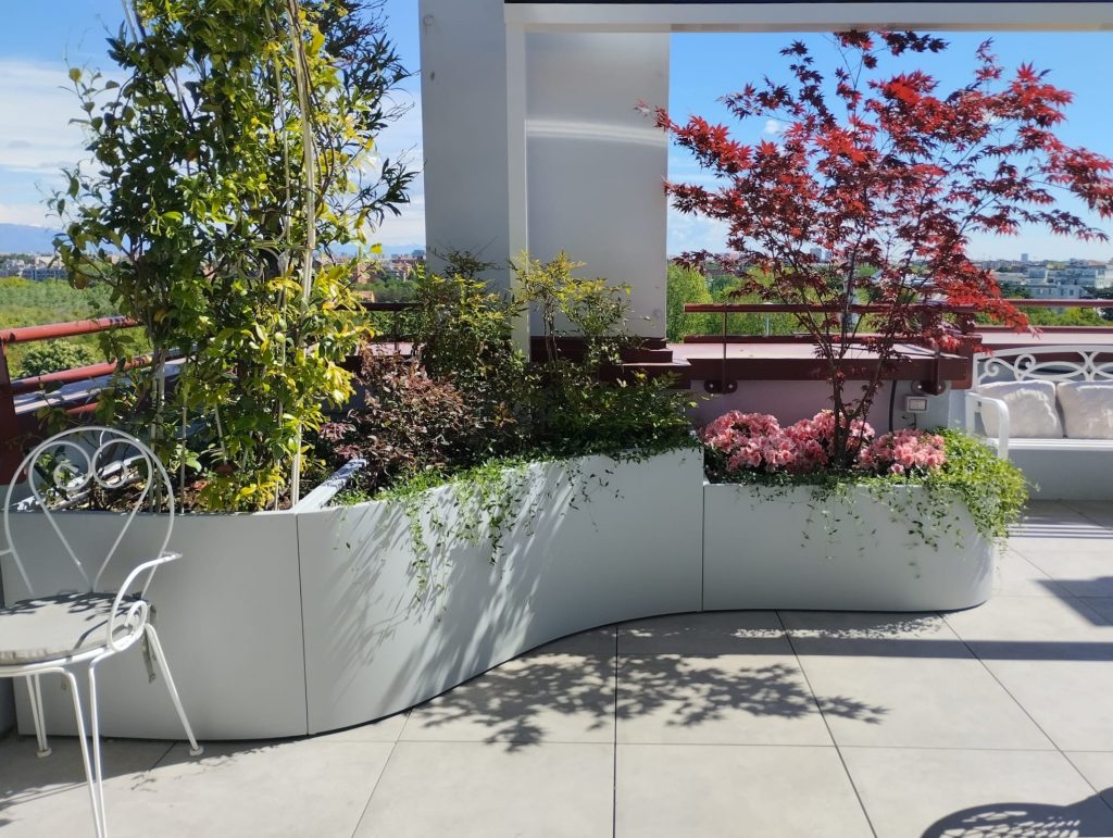 Le fioriere sagomate possono avere forme e dimensioni davvero infinite, seguono le linee dell’ambiente adattandosi e rendendo la terrazza, il balcone o gli ambienti di casa, luoghi unici.